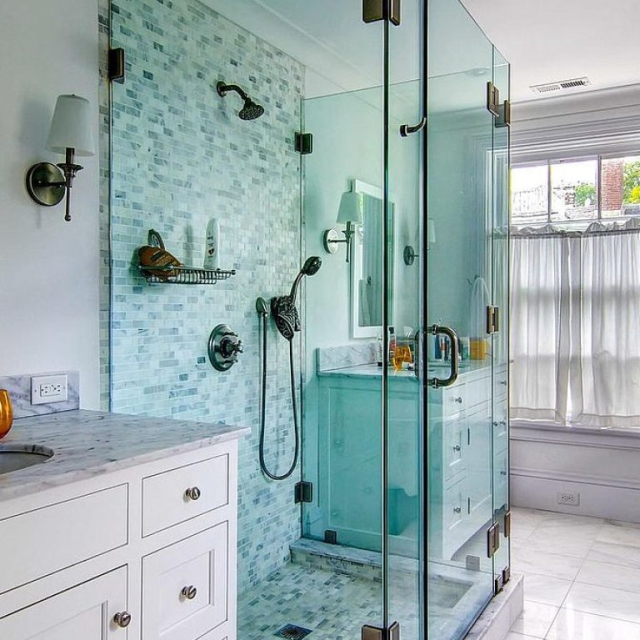 A bathroom is also a room where you can be a bit more adventurous since it is small and private. Clear glass, satin nickel sink faucets and cabinet hardware is a sure success. Shifting to oil rubbed bronze or even black faucets and hardware is more daring but, why not ? There’s no harm in going with some flare. How about deep colored custom cabinets and bathroom vanities coordinated with a striking wallpaper? It’s worth considering.