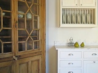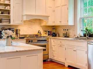 The majority of kitchens on the Vineyard have white cabinets with Shaker Style Doors. Some kitchens built on Martha’s Vineyard have a custom color or are made of natural wood – most typically cherry. We offer these alternate materials as well.